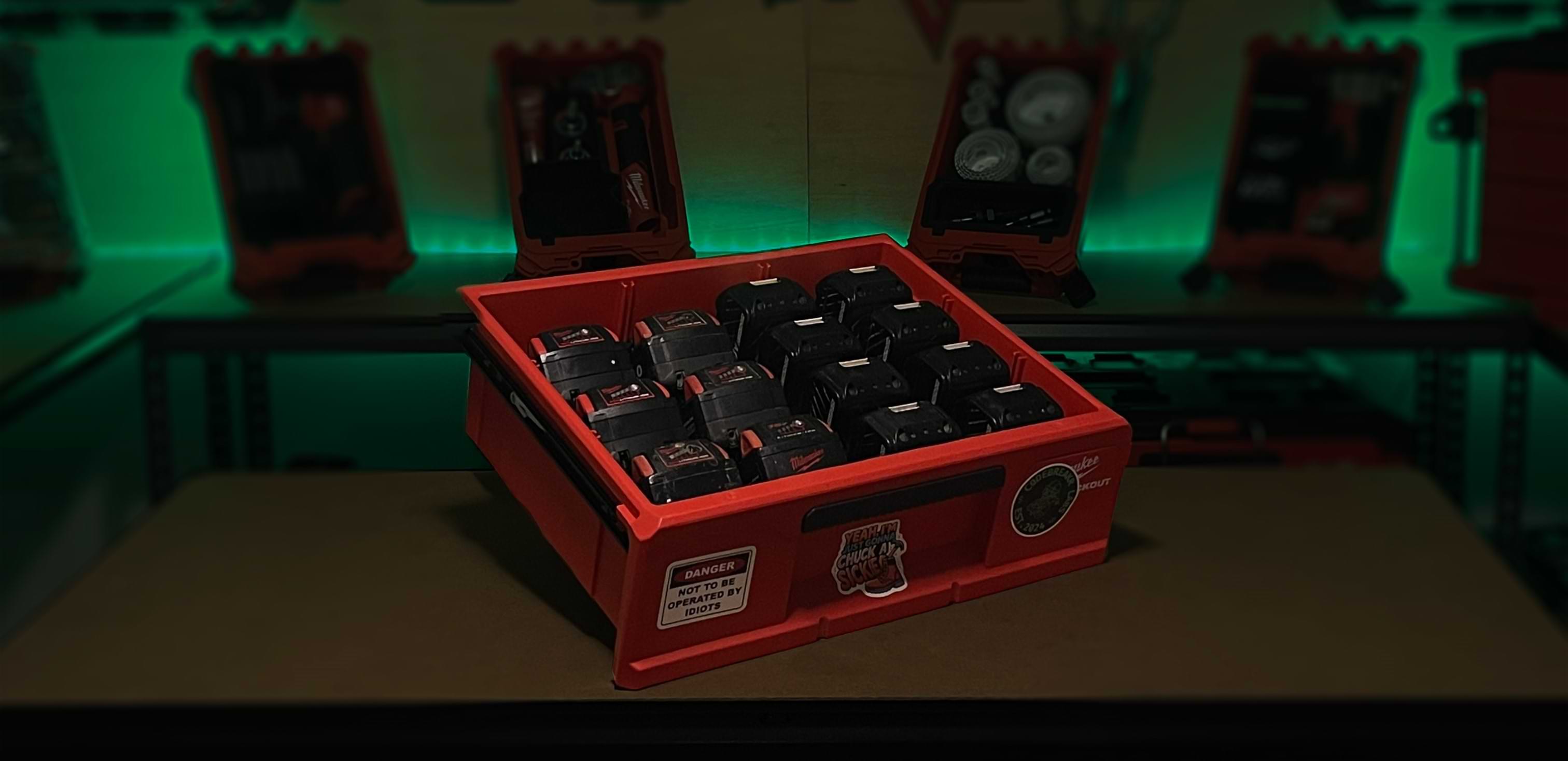 M18 Battery Storage Insert for Milwaukee PACKOUT™ Two-Drawer Toolbox