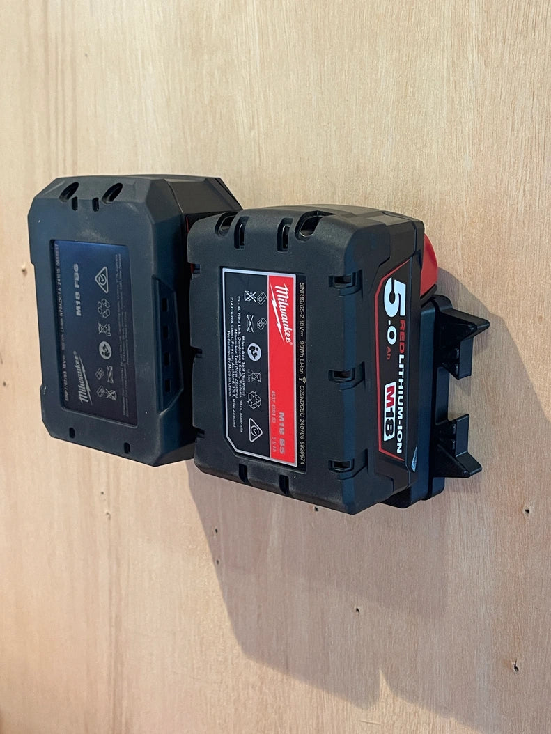A tough wall-mounted holder for Milwaukee batteries. Screws onto any vertical surface and snaps batteries straight in. Available in M12 or M18. The free gift is matched to your order, so you’ll receive the variant that suits your cart. Daisy-chainable, strong, and built for daily workshop and jobsite use.
