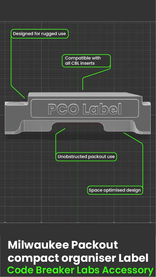 Finally, a PACKOUT label that fits properly. This curved, ergonomic label matches the Compact Organiser’s handle and shape perfectly, giving your setup a clean, factory-fitted finish that looks and feels right.