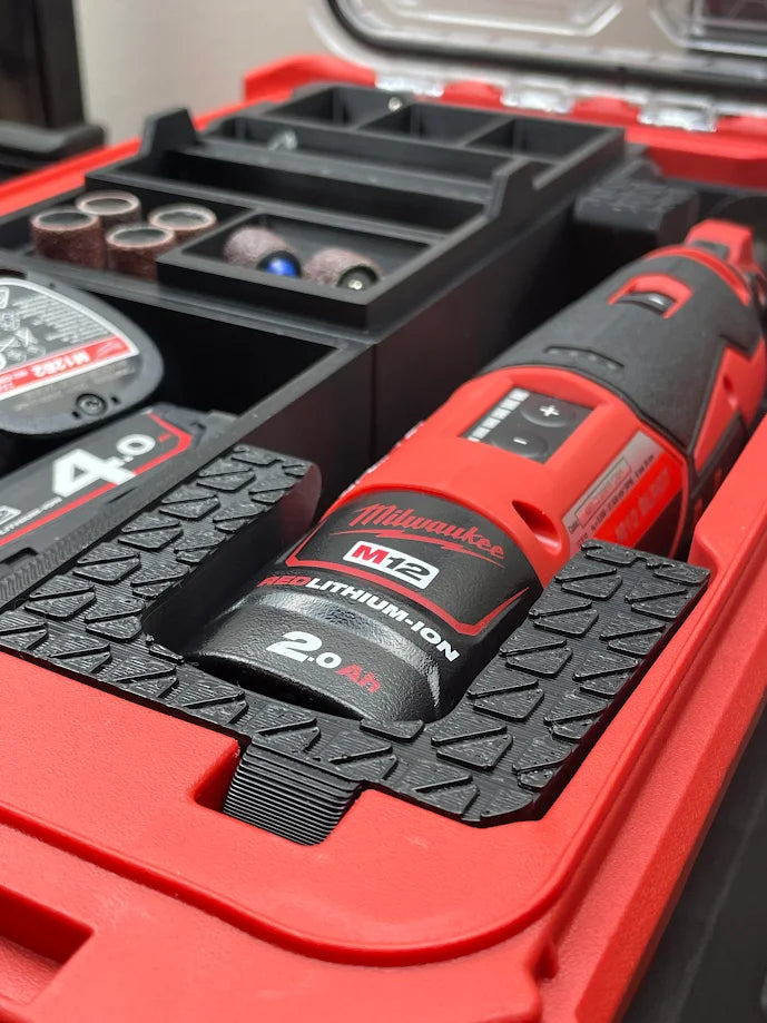 Keep your M12 Rotary Tool, batteries, and accessories sorted with this custom insert for the PACKOUT Compact Organiser. Built tough for site use, it keeps the whole kit locked in and job ready.
