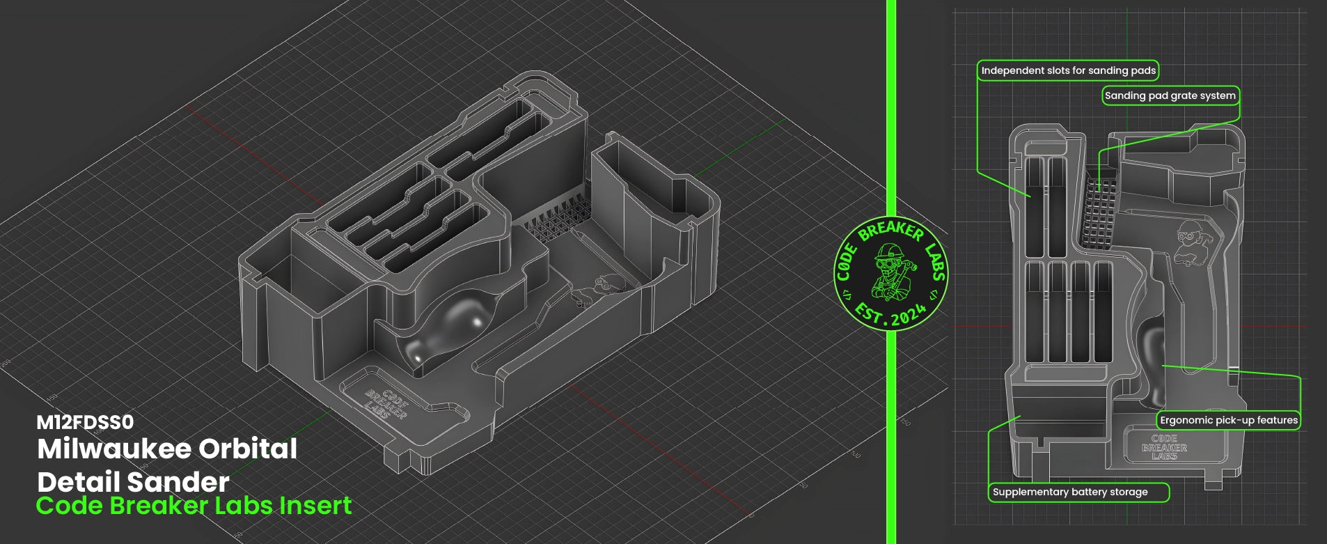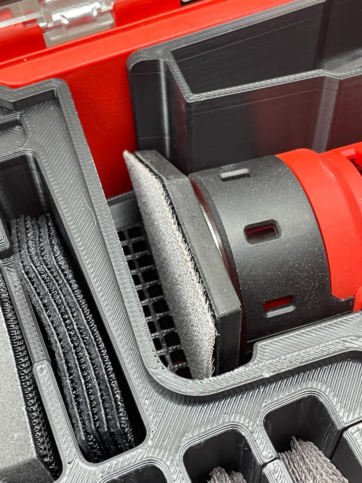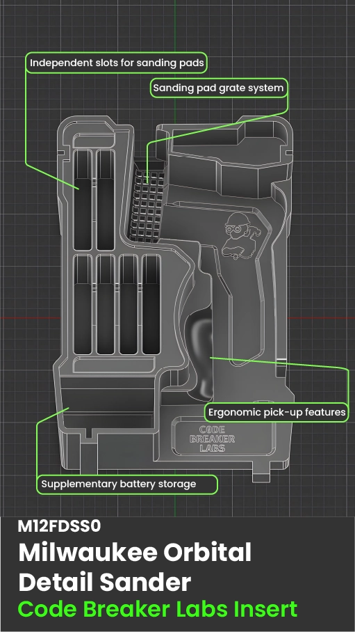 Lock in your M12 Orbital Detail Sander, sanding sheets, and batteries with this custom insert for the PACKOUT Compact Organiser. Built site tough to keep your sanding kit tidy, secure, and ready to grab.