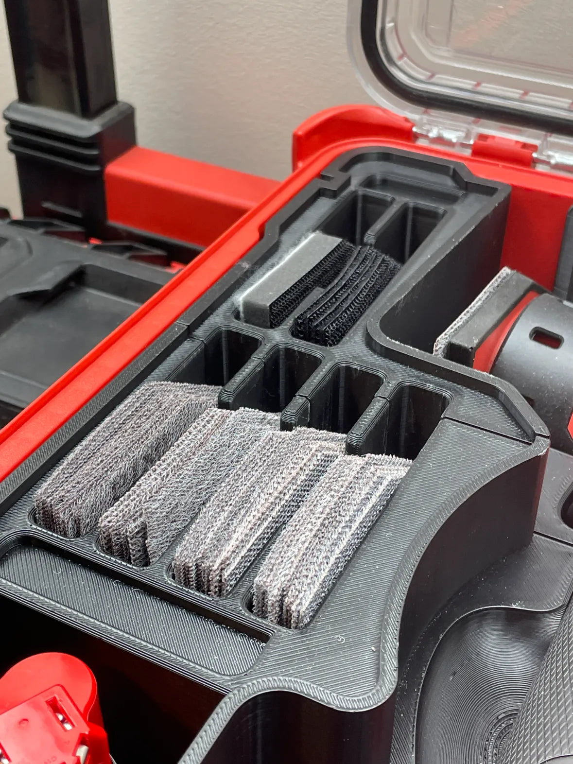 See how this insert keeps your sander, sheets, and batteries sorted in the PACKOUT Compact Organiser.
