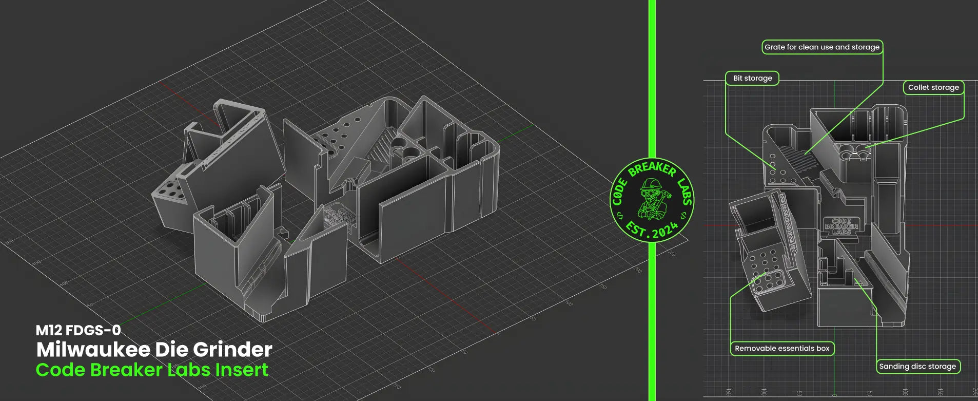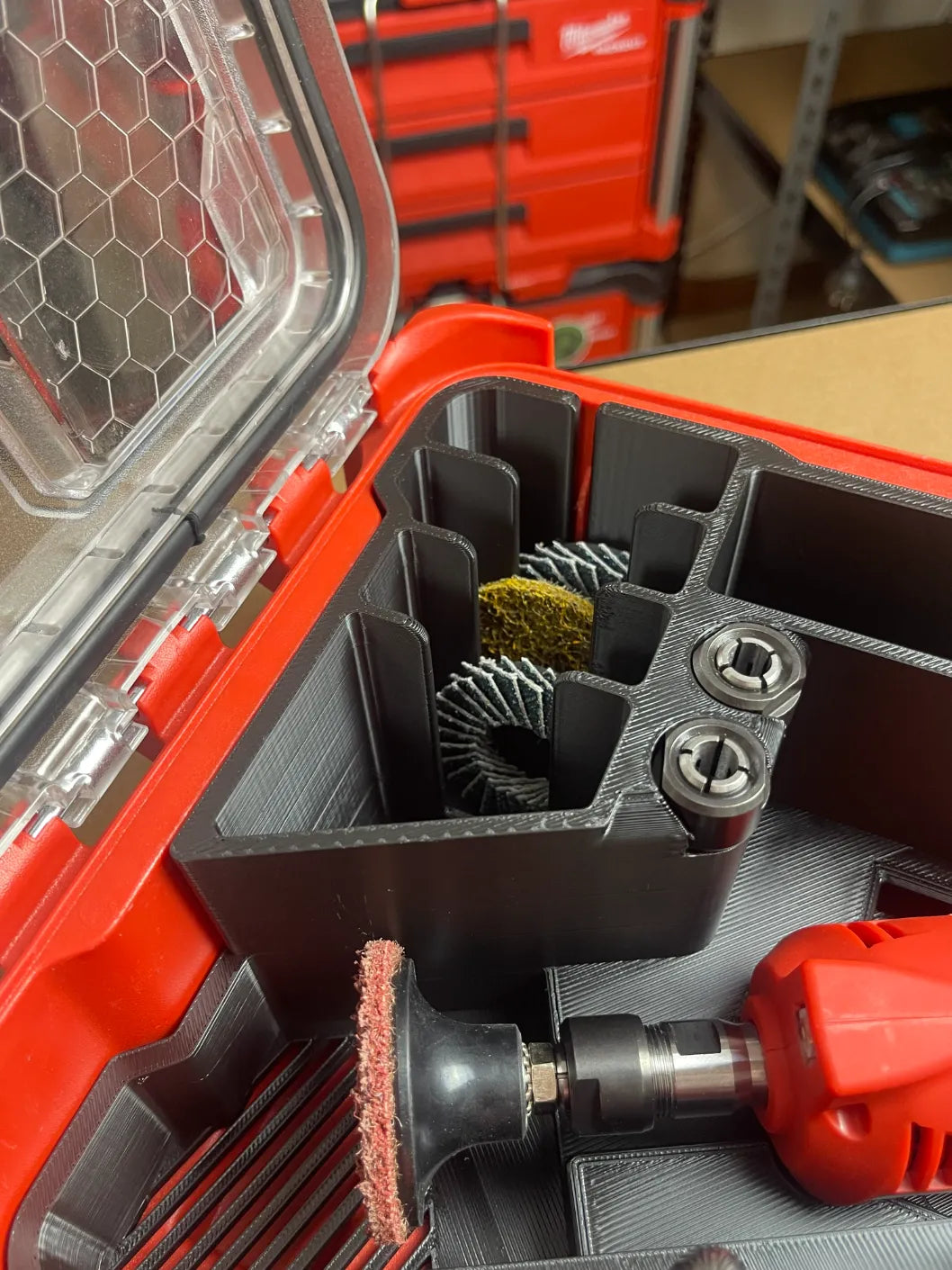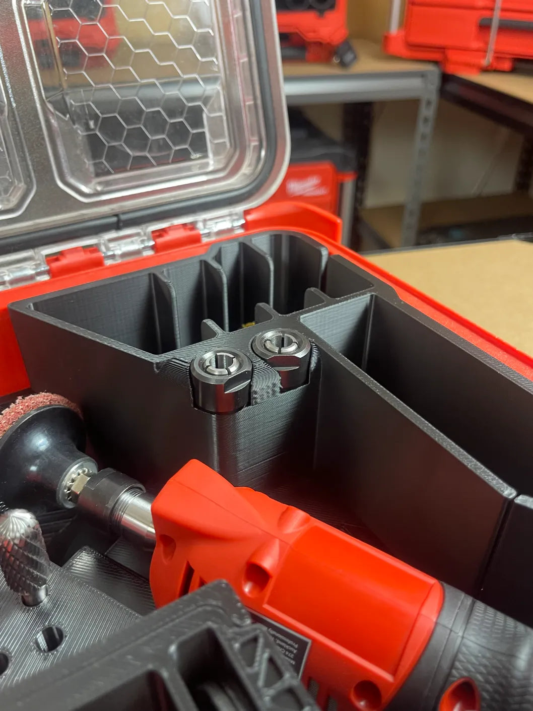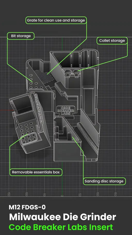 Unlock the full capability of your M12 Straight Die Grinder with this purpose-built PACKOUT insert. Designed for real jobsite use, it keeps your grinder, discs, heads, and accessories secure, organised, and ready for work.