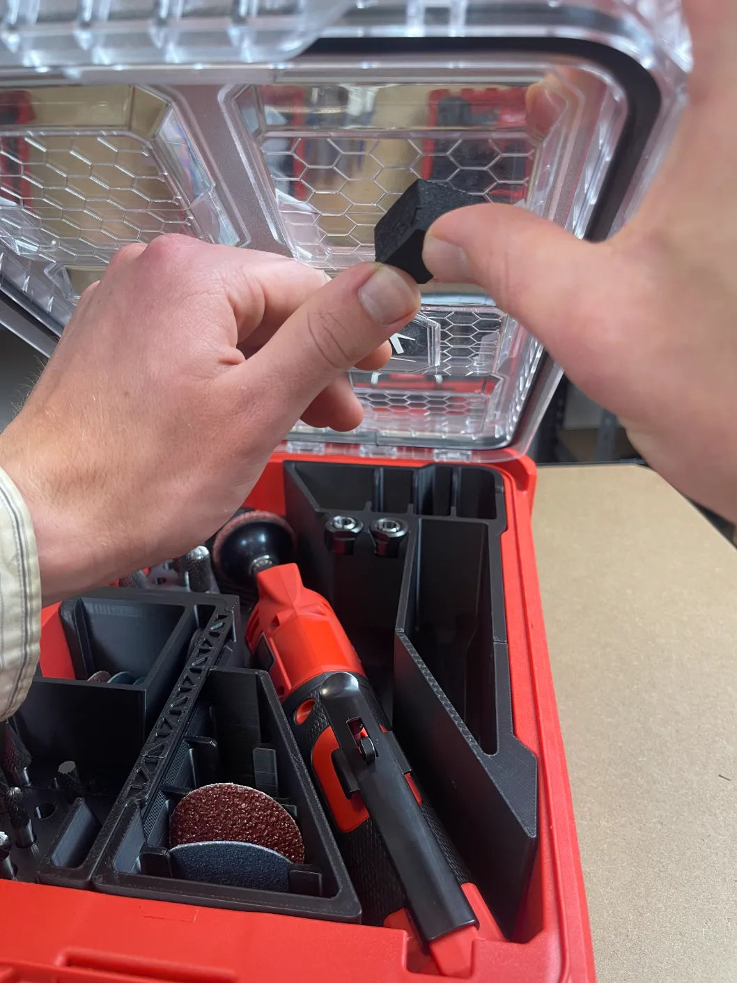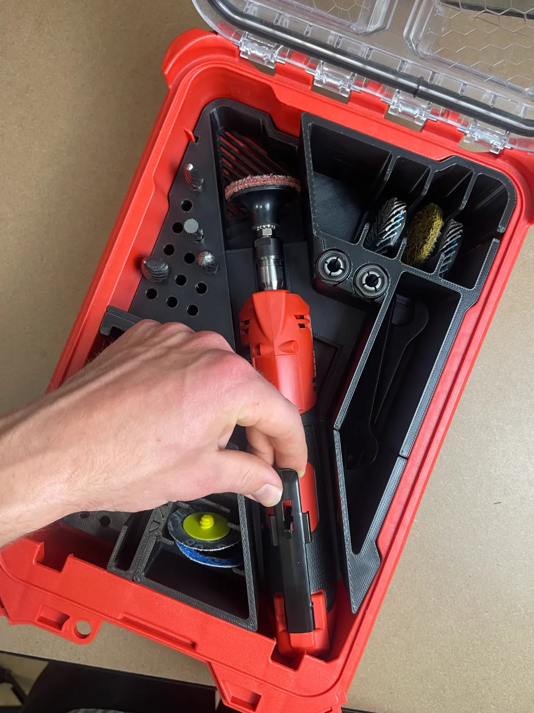 Watch how this insert holds your M12 FUEL™ Straight Die Grinder and accessories with zero wasted space.