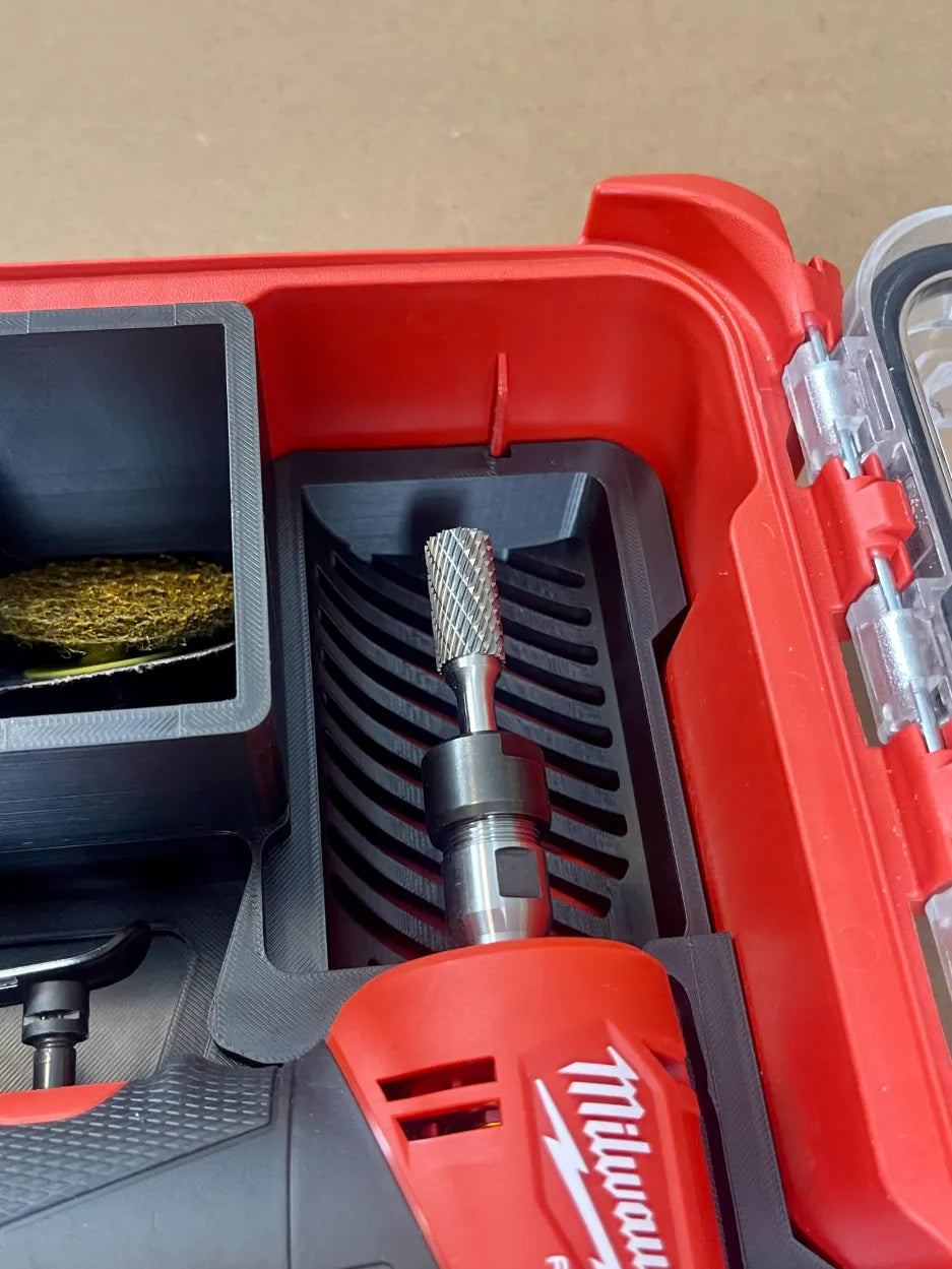 Unlock the full potential of your M12 Right Angle Die Grinder with this purpose-built PACKOUT insert. Designed for real jobsite use, it keeps your tool, heads, collets, and accessories organised, protected, and ready to work.
