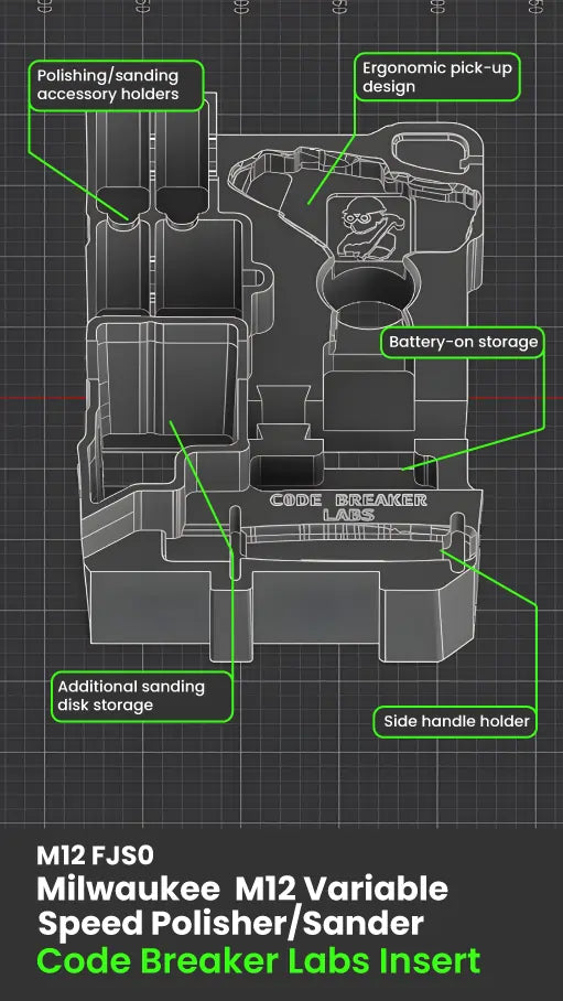 Purpose designed from the tool’s shape to hold the M12 Polisher Sander securely with easy pickup.