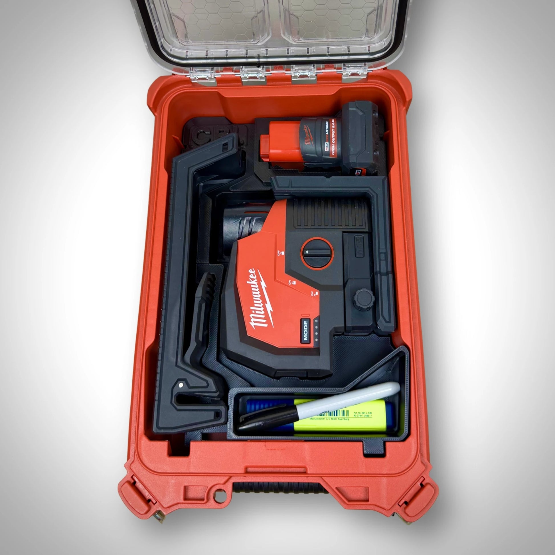 Keep your M12 Cross Line and Plumb Points Laser, accessories, and batteries organised in one clean setup inside the PACKOUT Compact Organiser. Designed for real jobsite use, it keeps everything secure, visible, and ready when you need it.
