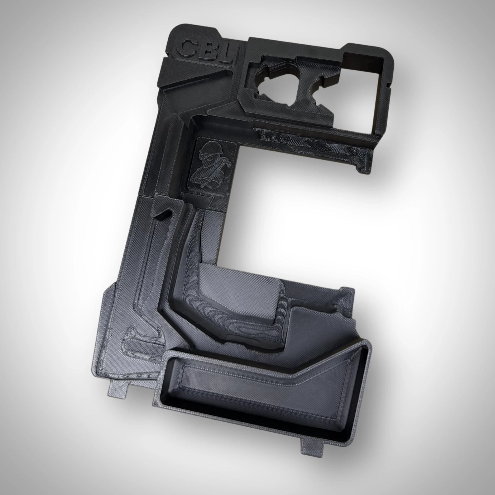 Mapped for a secure fit that holds the laser firmly and allows storage with a battery attached.